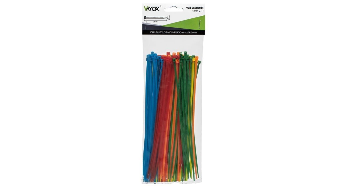 Opaski zaciskowe 2,5mm / 200mm mix kolorów 100 szt. VOZ-25200MIX Vayox