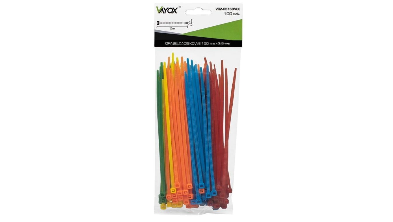Opaski zaciskowe 3,5mm / 150mm mix kolorów 100 szt. VOZ-35150MIX Vayox