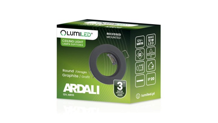 Oprawa HALOGENOWA Podtynkowa Stała Okrągła ARDALI Grafit Blacha MR16 GU10 LUMILED