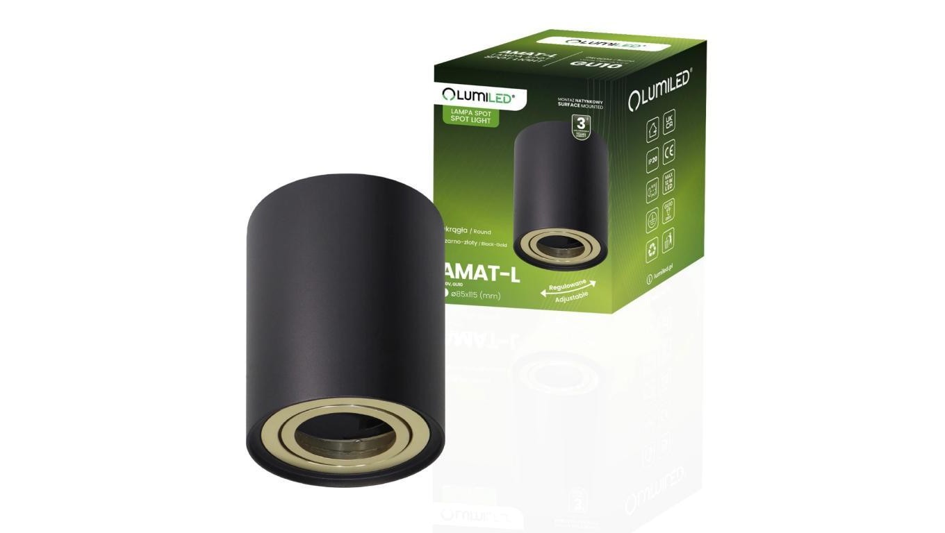 Oprawa Natynkowa HALOGENOWA Spot Tuba Ruchoma AMAT-L GU10 Okrągła CZARNO-ZŁOTA 115mm LUMILED