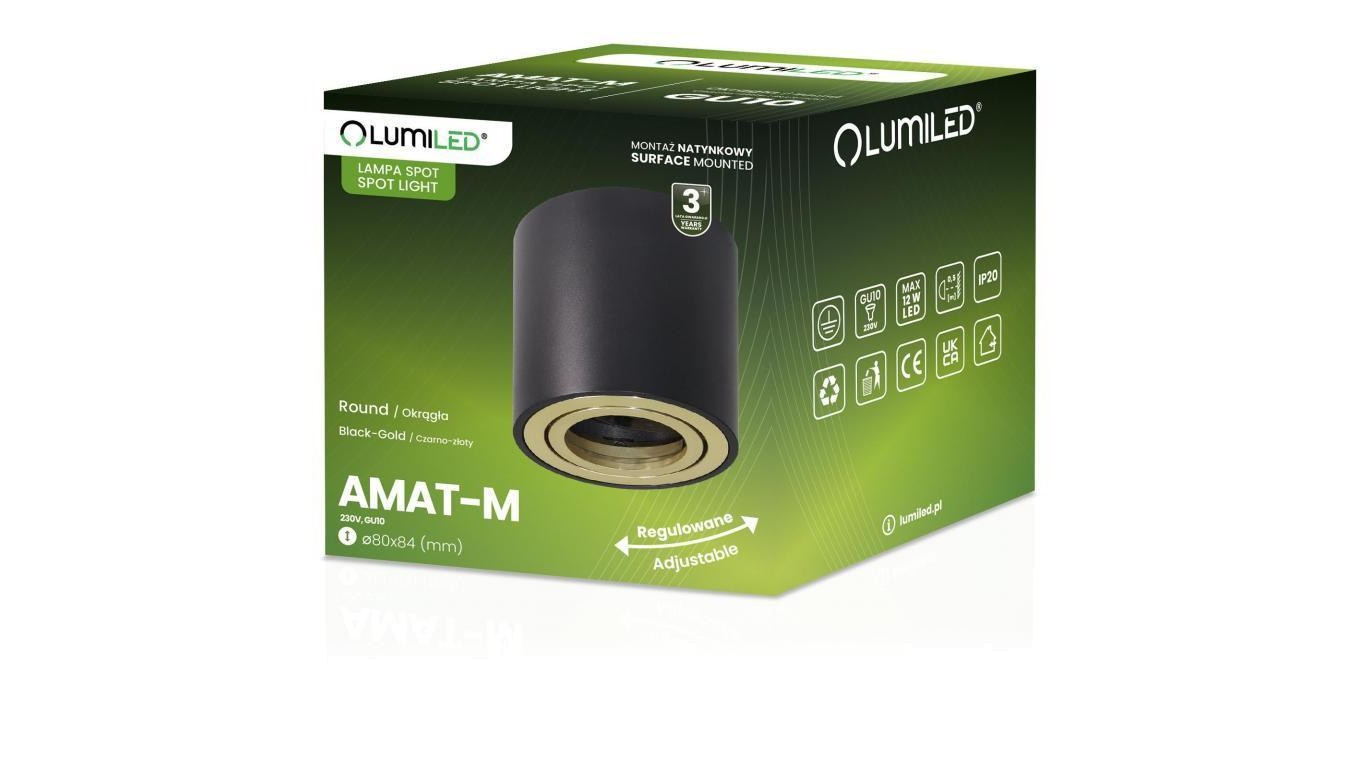 Oprawa Natynkowa HALOGENOWA Spot Tuba Ruchoma GU10 Okrągła Czarno-Złota 84mm AMAT-M LUMILED