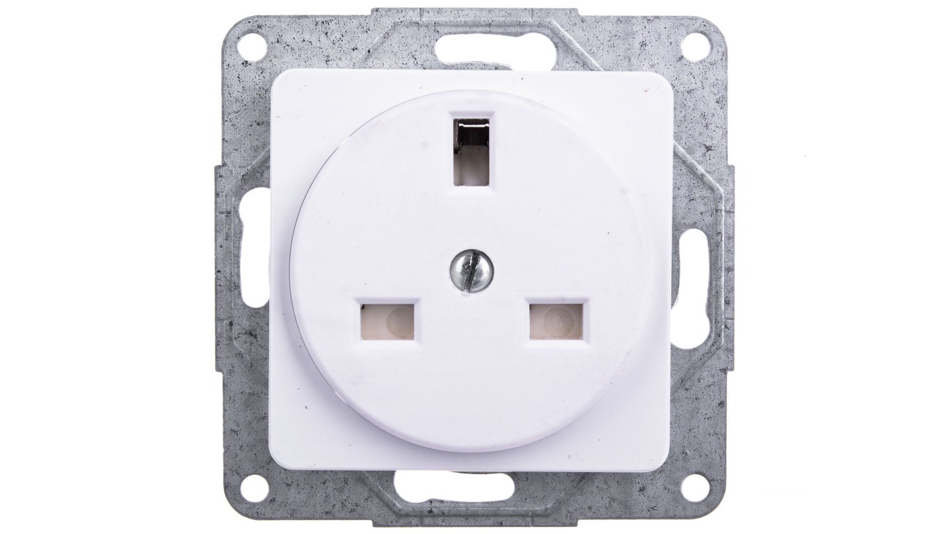 Optima Gniazdo brytyjskie pojedyncze z osłonami styków 13A 250V białe 12003102