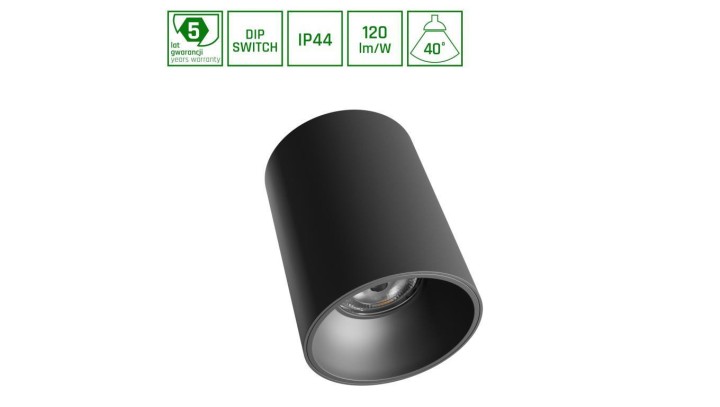 ORBITO NATYNKOWA 14-27W NW 230V 40ST IP44 UGR19 RA90 FI115X152MM CZARNY OKRĄGŁA 5 LAT