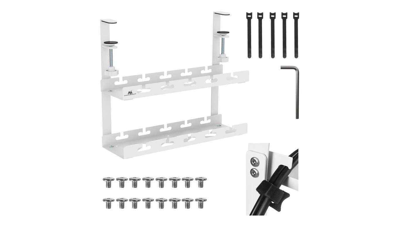 Organizer podbiurkowy na kable Maclean, max. obciążenie 5kg, 2 poziomy, biały, MC-104 W