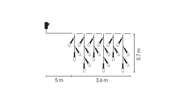 Oświetlenie świąteczne XMAS sople 6W 200LED 3,6m IP44 /8 programów/ ciepła białaD4CW01