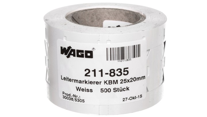 Oznaczniki na opaskę zaciskową kabla 25x20mm w taśmie 1-rzędowej 500 tabliczek w rolce 211-835