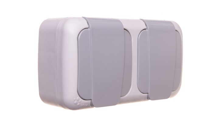PALMIYE Gniazdo podwójne z uziemieniem IP54 szare 90555585