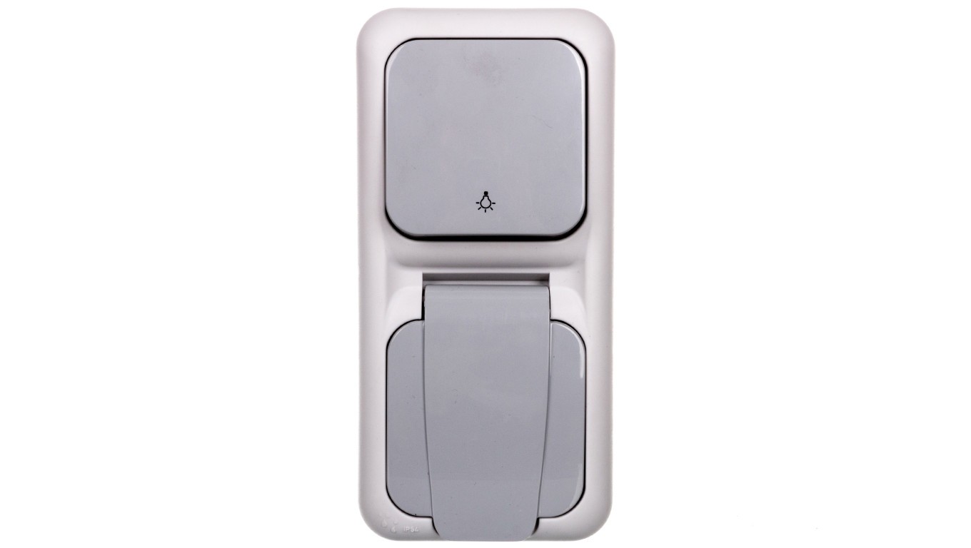 PALMIYE Przycisk /światło/ + gniazdo z/u pionowe IP54 szary 90555780