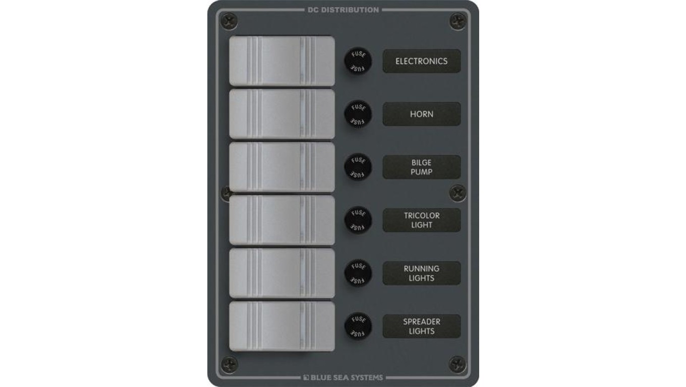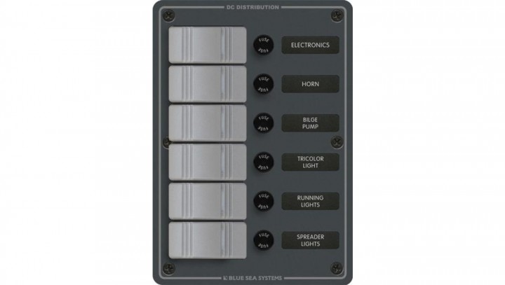 Panel Przełączników Blue Sea – 6 pozycji, wodoodporny, szary IP 66