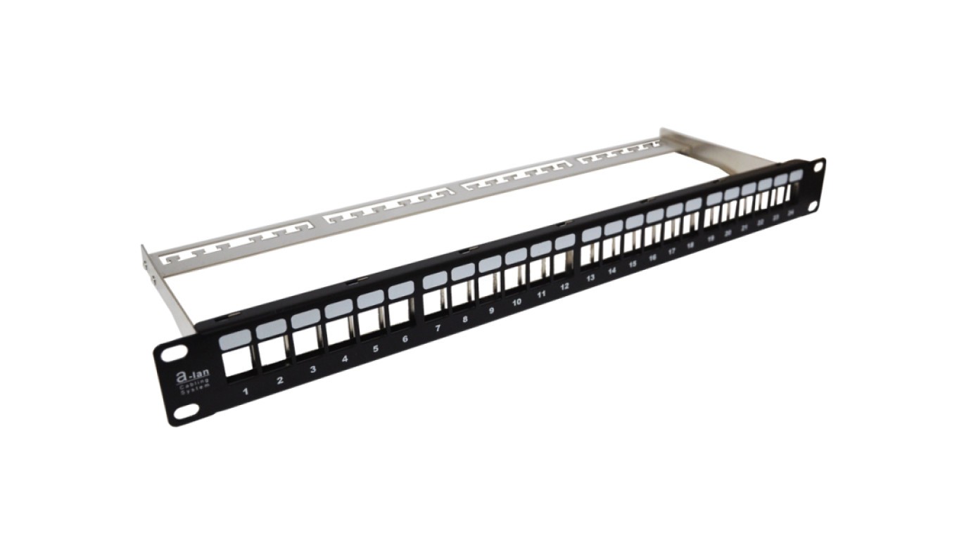 Patch panel 19 modularny 24 porty 1U z podporą niewyposażony PK020