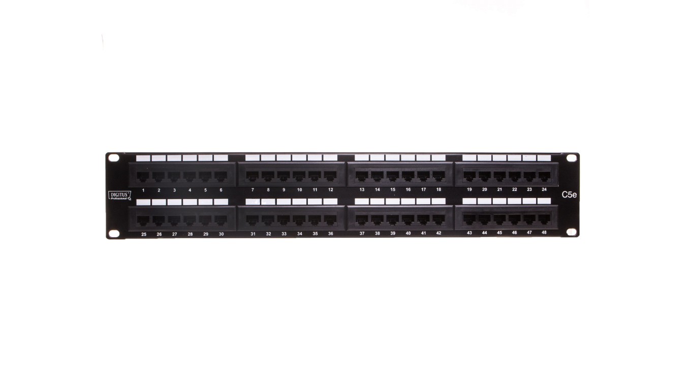 Patch panel kompletny 19 cali 48x RJ45 U/UTP kat. 5e 2U czarny (RAL 9005) DN-91548U