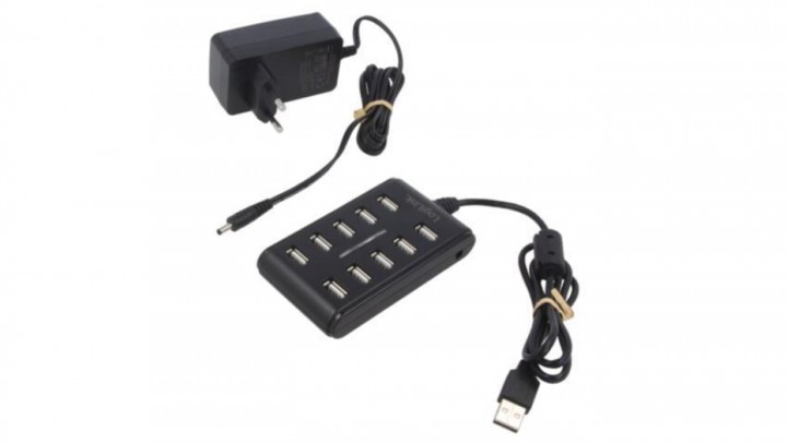 PC-UA0125 Hub USB, DC, USB A gniazdo x10, USB A wtyk, USB 2.0, PnP, 480Mbps