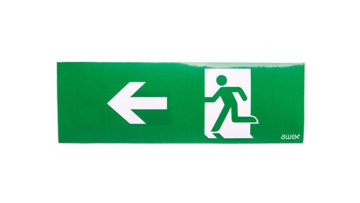 Piktogram 100x300 PM24 strzałka lewo człowiek w drzwiach logo awex (ISO7010)