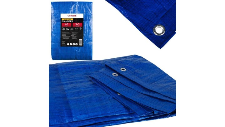 Plandeka 3x3 niebieska wzmacniana z oczkami płachta Schmith