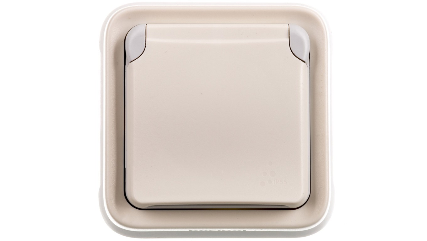 PLEXO55 Gniazdo pojedyncze z/u 16A z klapką ecru/białe 069870