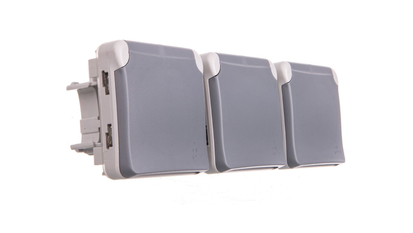 PLEXO55 Gniazdo potrójne poziome z/u szare 069564