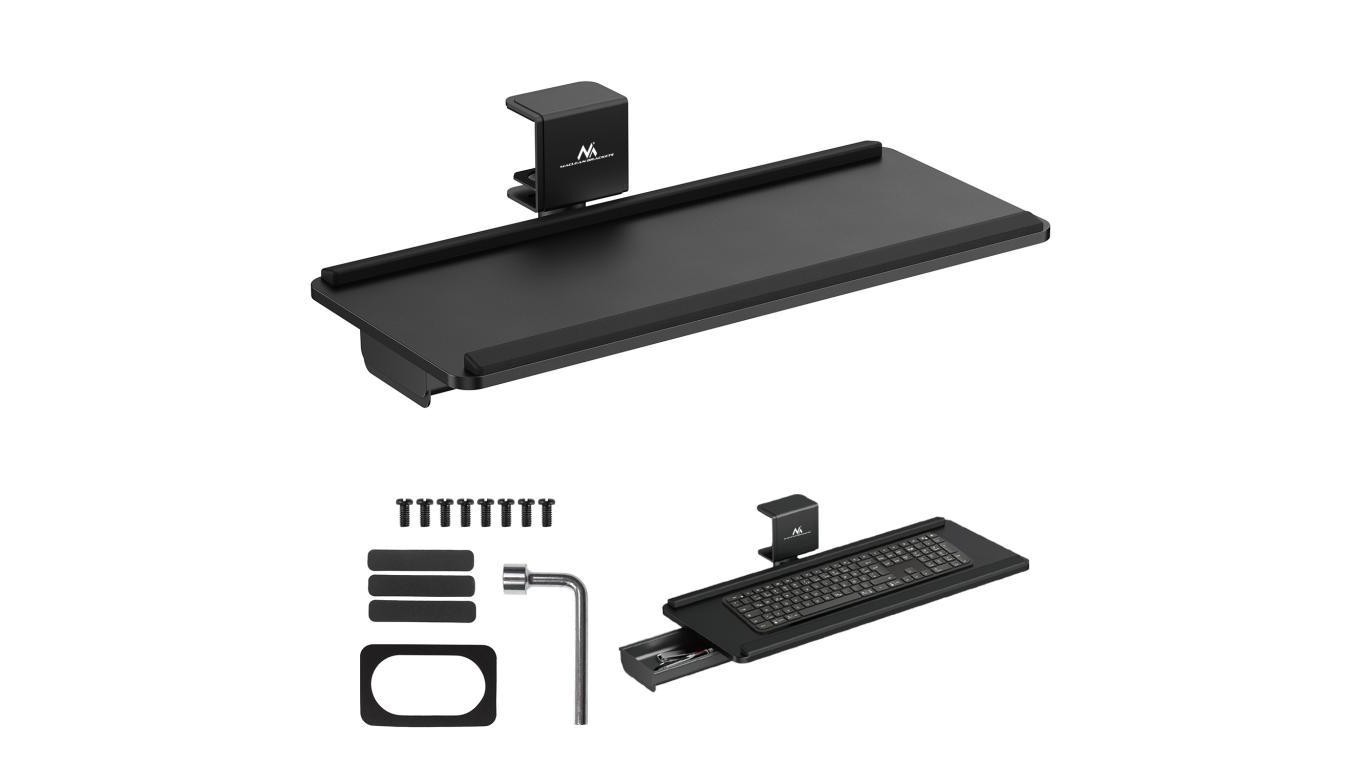 Podbiurkowy uchwyt na klawiaturę Maclean, max. obciążenie 5kg, reg. w poziomie i pionie, czarny, MC-108 B