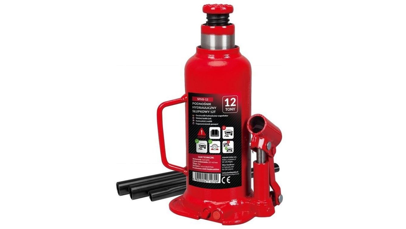 Podnośnik samochodowy hydrauliczny butelkowy słupkowy lewarek do 12 ton Schmith