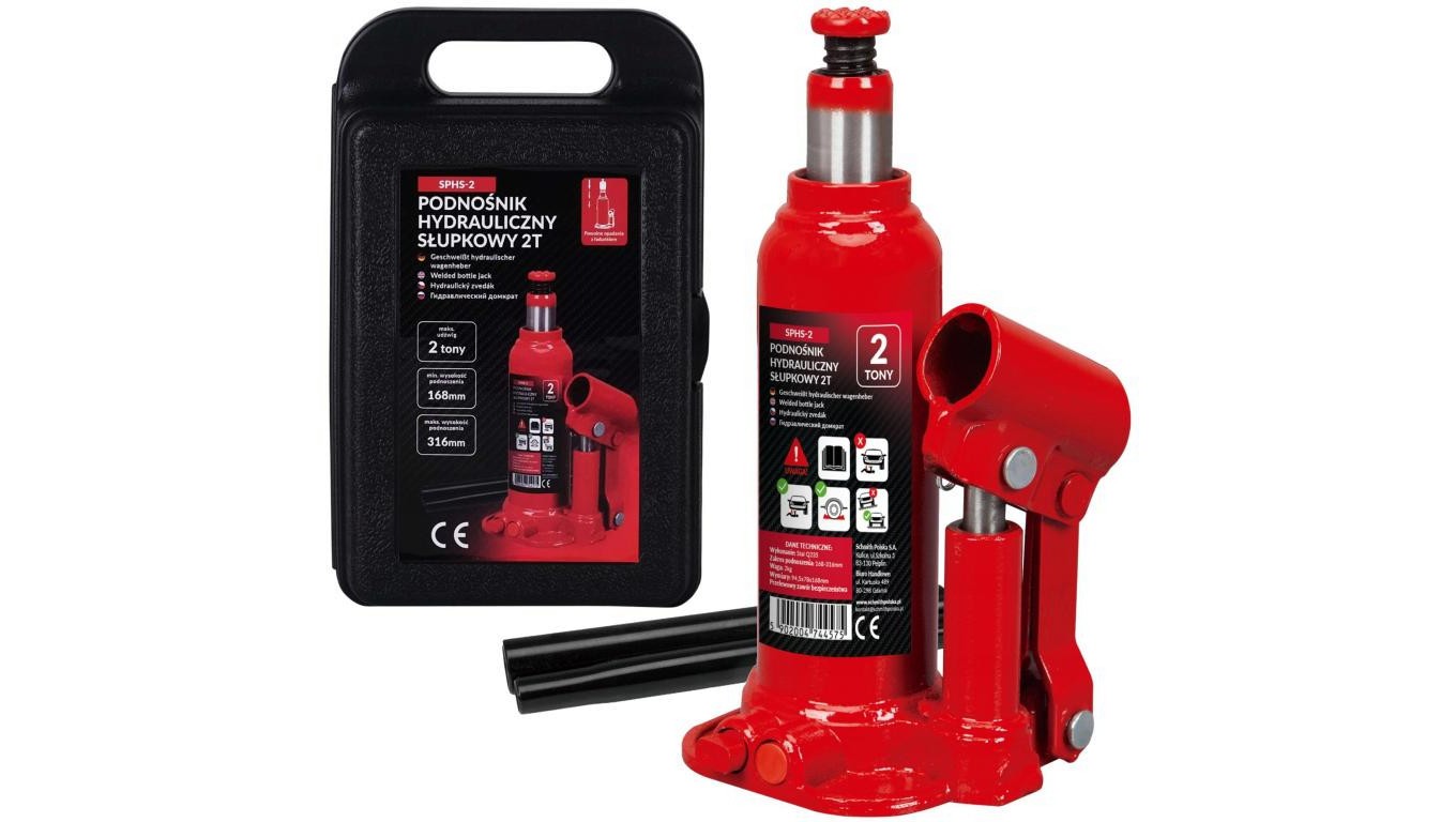 Podnośnik samochodowy hydrauliczny butelkowy słupkowy lewarek do 2 ton Schmith