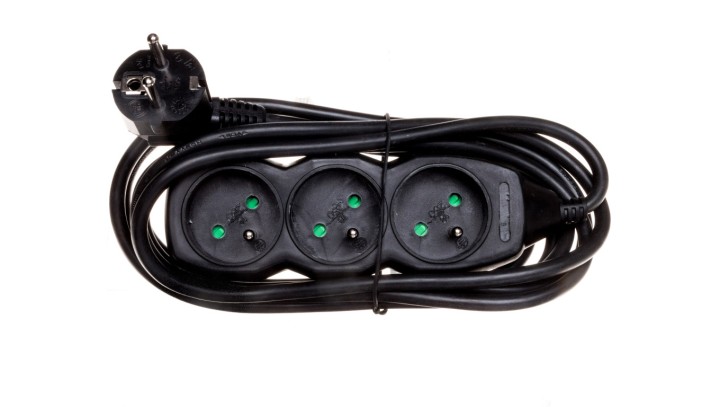 Przedłużacz 3-gniazda z/u 3m /H05VV-F 3G1/ czarny PC0313
