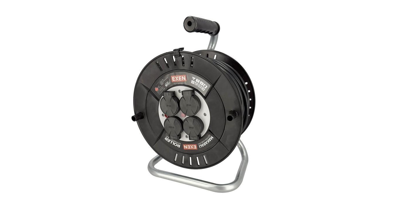 Przedłużacz bębnowy 4-gniazdowy IP44 czarny 3×2,5 mm² 30 m EX.310.130.302 EXEN