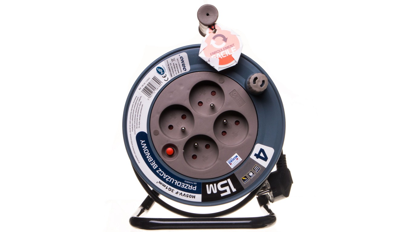 Przedłużacz bębnowy MINI 15m 4x230V /PVC 3x1mm2/ szary OR-AE-1339/G