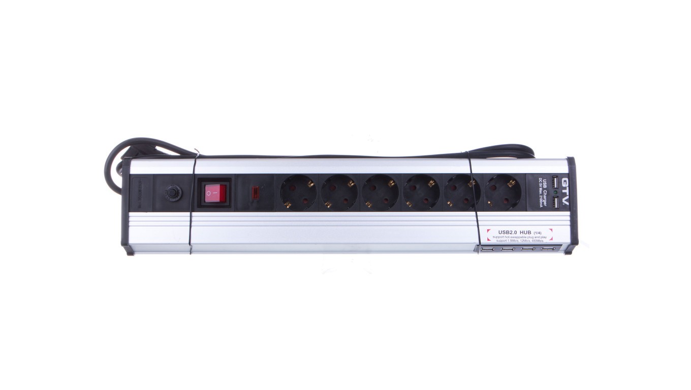 Przedłużacz biurkowy MULTI z zabezpieczeniem przeciwprzepięciowym, 6x gniazdo schuko, 4x USB data, 2