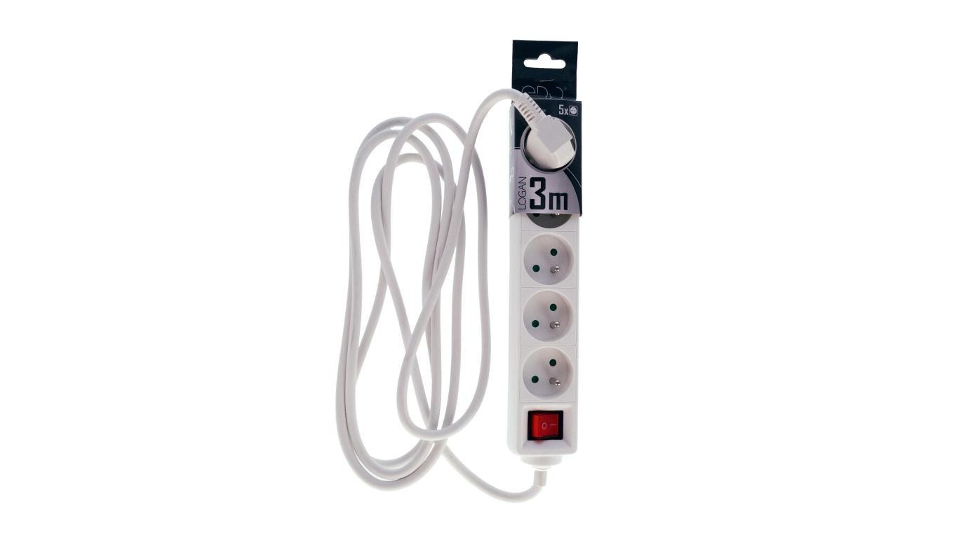 Przedłużacz domowy przenośny LOGAN White 5 - krotny z uziemieniem 3m z włącznikiem EDO777672