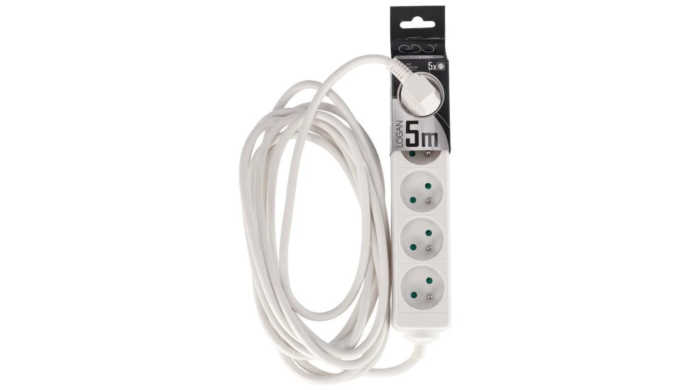 Przedłużacz domowy przenośny LOGAN White 5 - krotny z uziemieniem 5m EDO777559 EDO