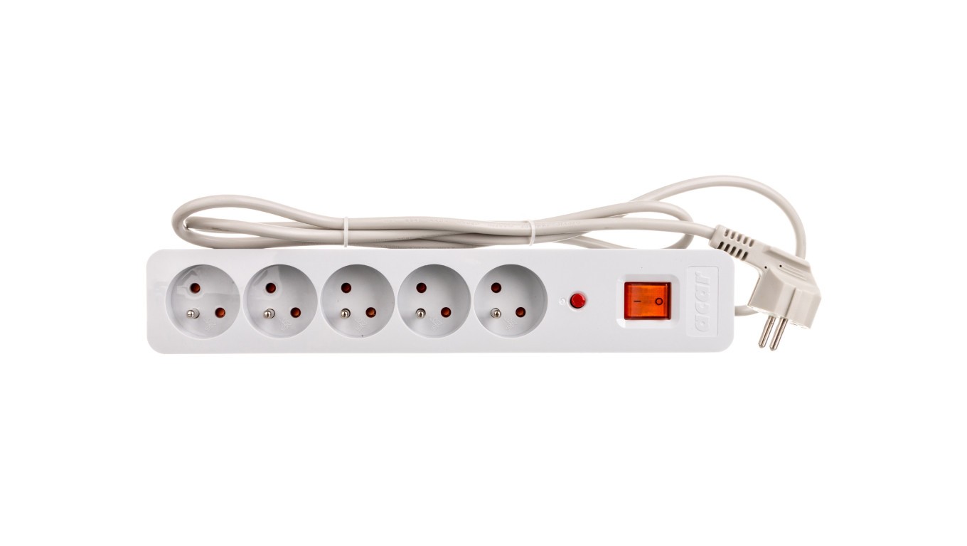 Przedłużacz przeciwprzepięciowy 5-gniazd ACAR X5 1,5m szary