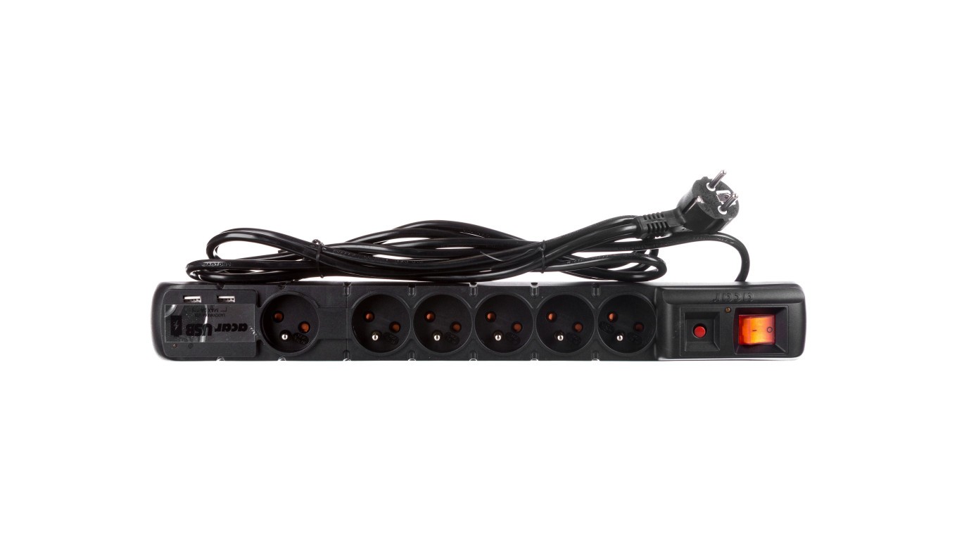Przedłużacz przeciwprzepięciowy 6-gniazd z/u +2xUSB ACAR USB 3m czarny