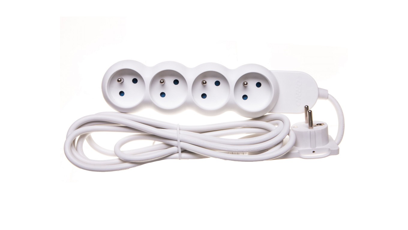 Przedłużacz z wtyczką płaską 4x2P+Z 3m biały OR-AE-1330/W/3M