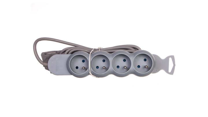 Przedłużacz z wtyczką płaską 4x2P+Z 5m szary OR-AE-1330/G/5M