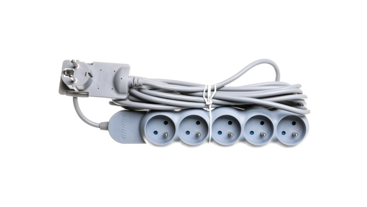 Przedłużacz z wtyczką płaską 5x2P+Z 5m szary OR-AE-1332/G/5M