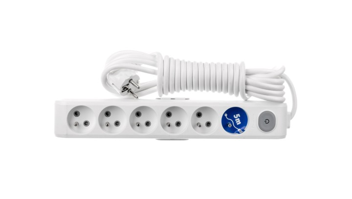 Przedłużacz z wyłącznikiem 5m 6 gniazda z uziemieniem biały WLTA0665-2WH