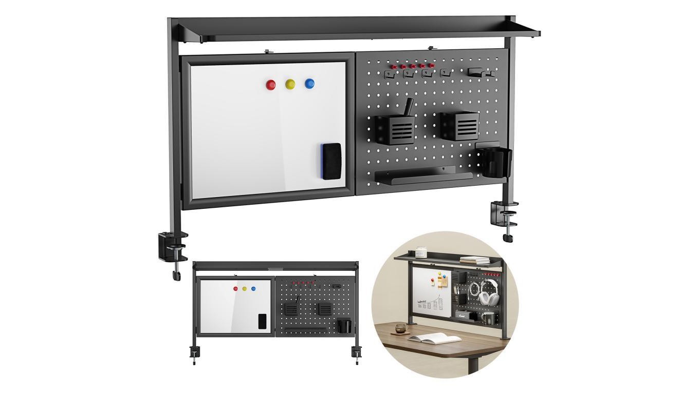 Przegroda biurkowa / organizer Ergo Office, max. obciążenie 10kg, biała tablica, szerokość 1116mm, czarna, ER-301 B