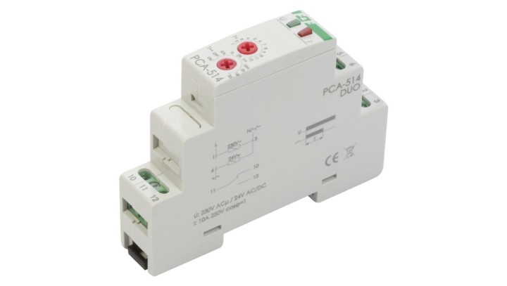 Przekaźnik czasowy 1P 10A 0,1sek-576h 230V AC, 24V AC/DC opóźnione wyłaczenie PCA-514DUO