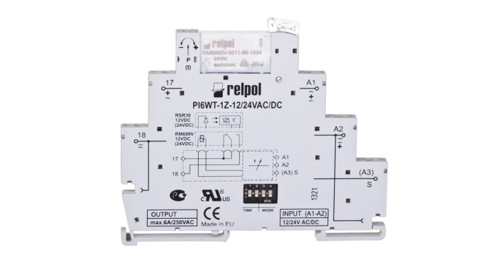 Przekaźnik czasowy wąskoprofilowy wielofunkcyjny 1Z 6A 1sek-10dni 24V AC/DC PIR6WT-1Z-24VAC/DC-R 857666