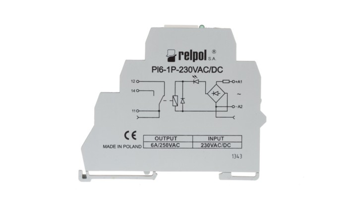 Przekaźnik interfejsowy 1P 6A 230V AC/DC AgSnO2 PI6-1P-230VAC/DC 858559