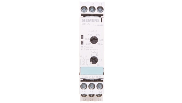 Przekaźnik kolejności, zaniku faz i obniżenia napięcia 2P 3A 0,1-20sek 160-690V AC 3UG4513-1BR20
