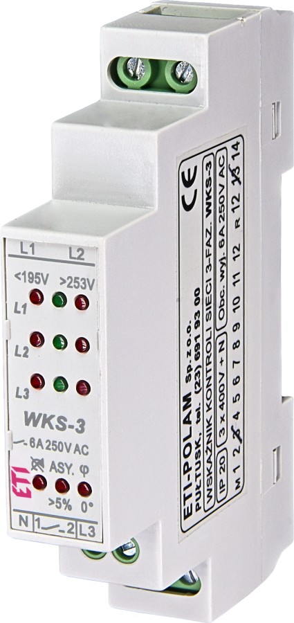 Przekaźnik kolejności, zaniku i asymetrii faz 1Z 6A 230V AC WKS-3 002470300
