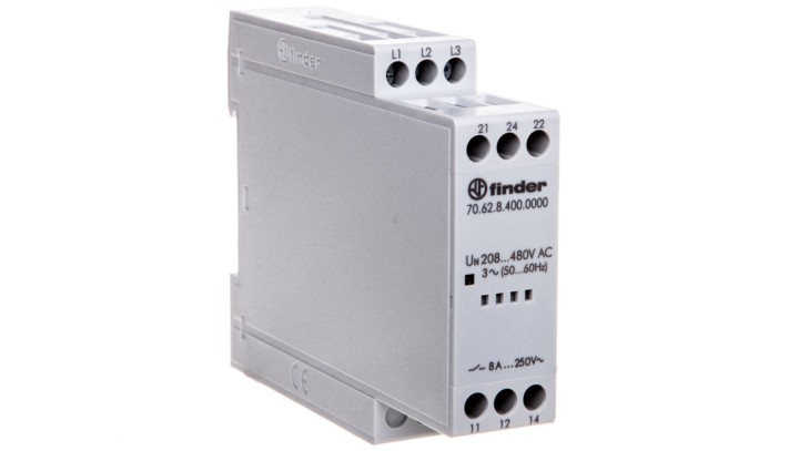 Przekaźnik kontroli napięcia 3-fazowy kontrola zaniku, rotacji i niskiej wart. nap. na fazę 208-480V AC 70.62.8.400.0000