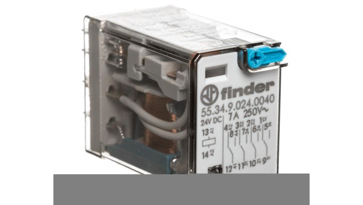 Przekaźnik miniaturowy 4P 7A 24V DC przycisk testujący mechaniczny wskaźnik zadziałania AgNi 55.34.9.024.0040