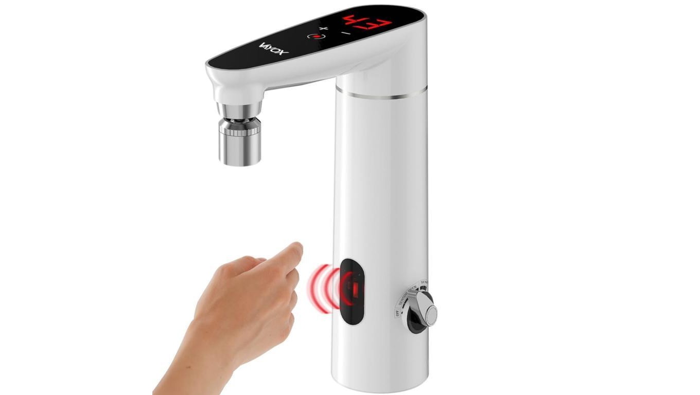 Przepływowy podgrzewacz wody łazienkowy pionowy, automatyczny, wyświetlacz, biały VA0320 VAYOX