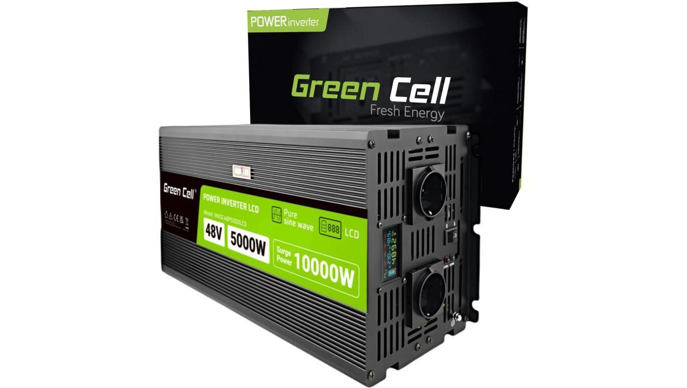 PRZETWORNICA NAPIĘCIA Green Cell PowerInverter LCD 48V -igt/br 230V 5000/10000W CZYSTA SINUSOIDA