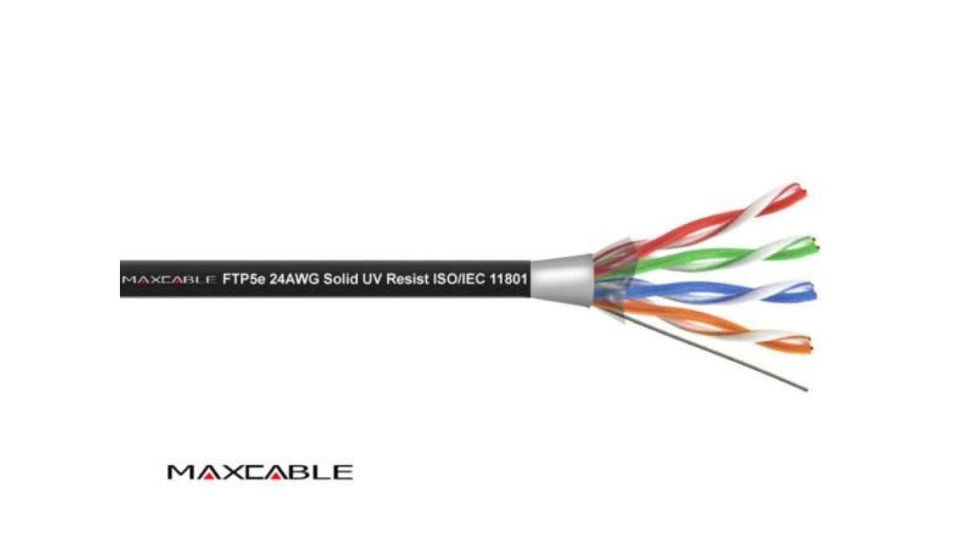 Przewód FTP5E drut Cu UV czarny 305m MAXCABLE
