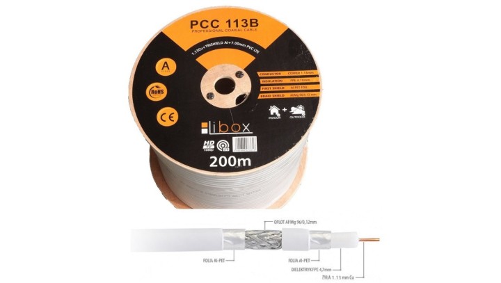 Przewód koncentryczny SAT 1,13/4,7 LIBOX reakcja na ogień Eca PCC113B /200m/