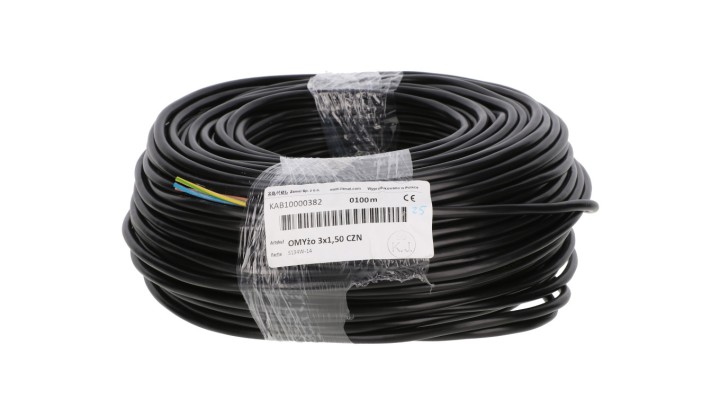 Przewód mieszkaniowy H03VV-F (OMY) 3x1,5 żo czarny 300/300V /100m/