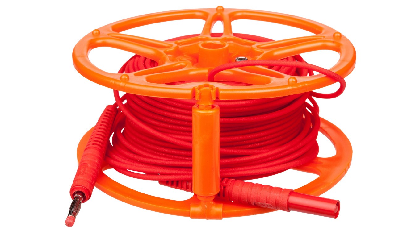 Przewód pomiarowy 30m czerwony na szpuli /wtyki bananowe/ WAPRZ030REBBSZ