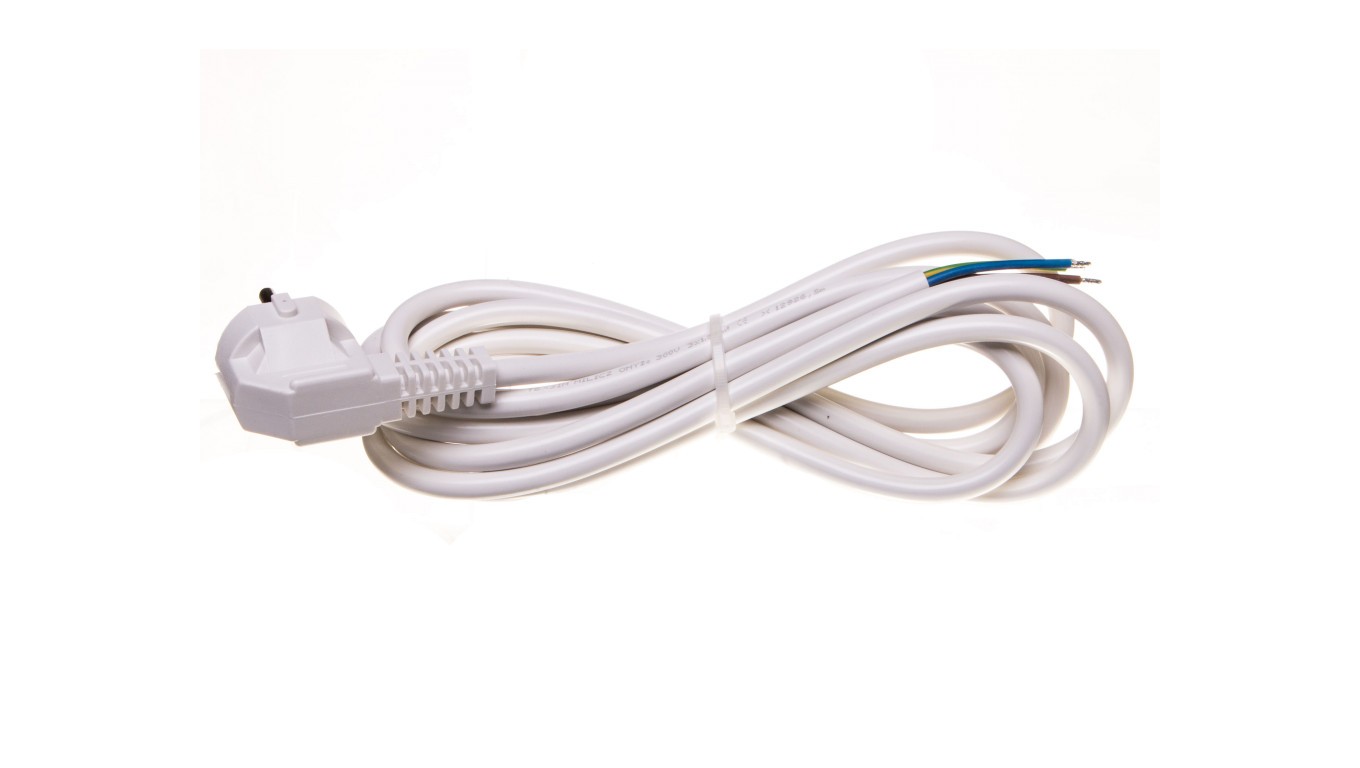 Przewód przyłączeniowy W-3 3x1,5 mm2 biały z wtyczką kątową 3m 51.935
